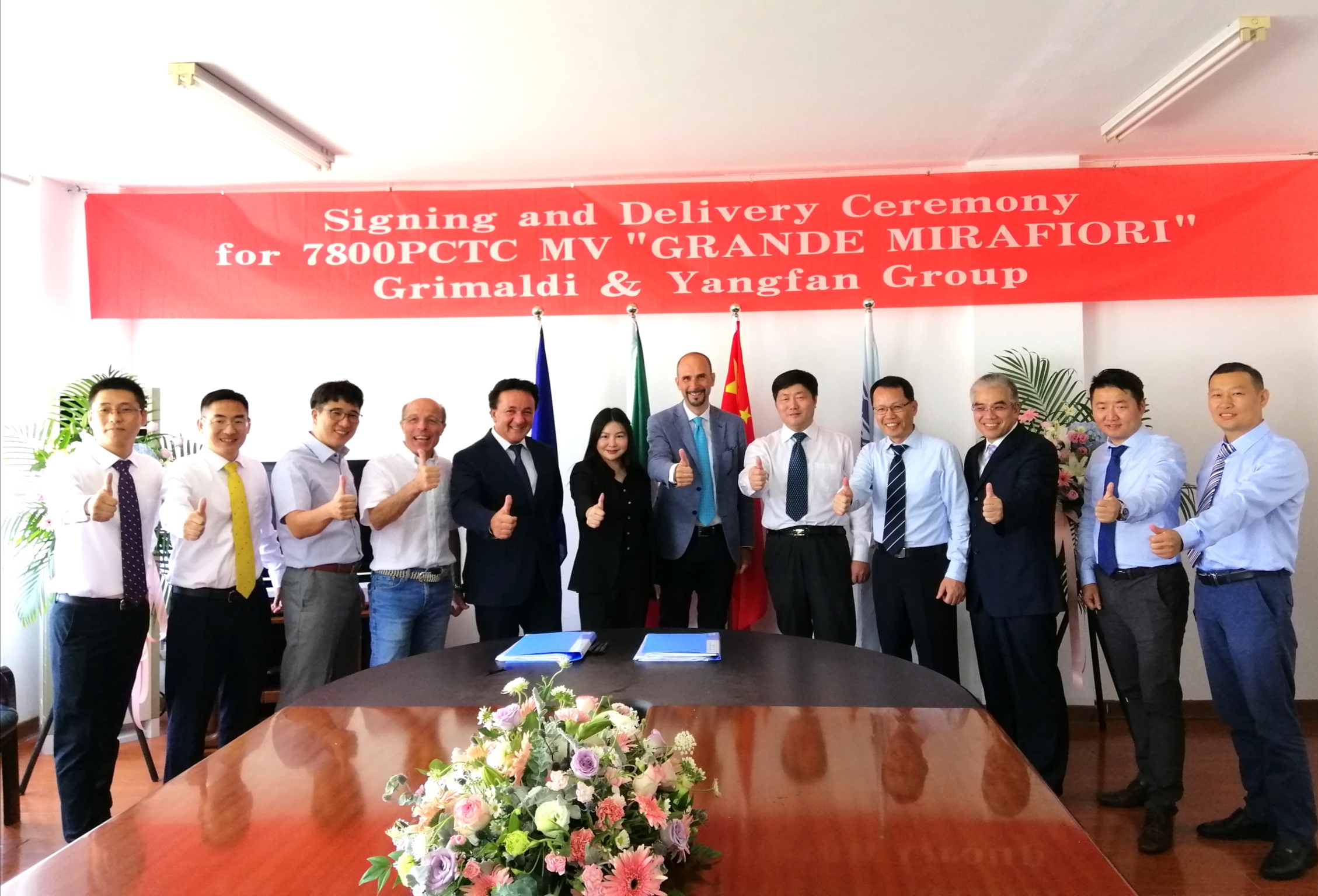 揚帆集團一艘7800車系列汽車滾裝船正式簽字交付