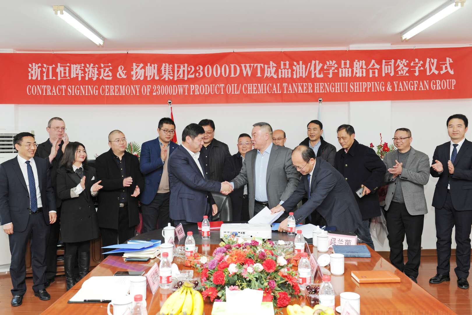 2020年1月1日,揚(yáng)帆集團(tuán)與國(guó)內(nèi)一船東簽署了一艘23,000噸級(jí)成品油兼化學(xué)品船建造合同。該船型總長(zhǎng)159.20米,型寬24.80米,型深13.85米,結(jié)構(gòu)吃水9.80米,最大23,000載重噸,液貨艙艙容達(dá)27,000立方米。該船可裝載輕汽油、柴油、2類化學(xué)品等貨品。該項(xiàng)目的簽署為揚(yáng)帆2020年的市場(chǎng)開(kāi)拓注入了信心。