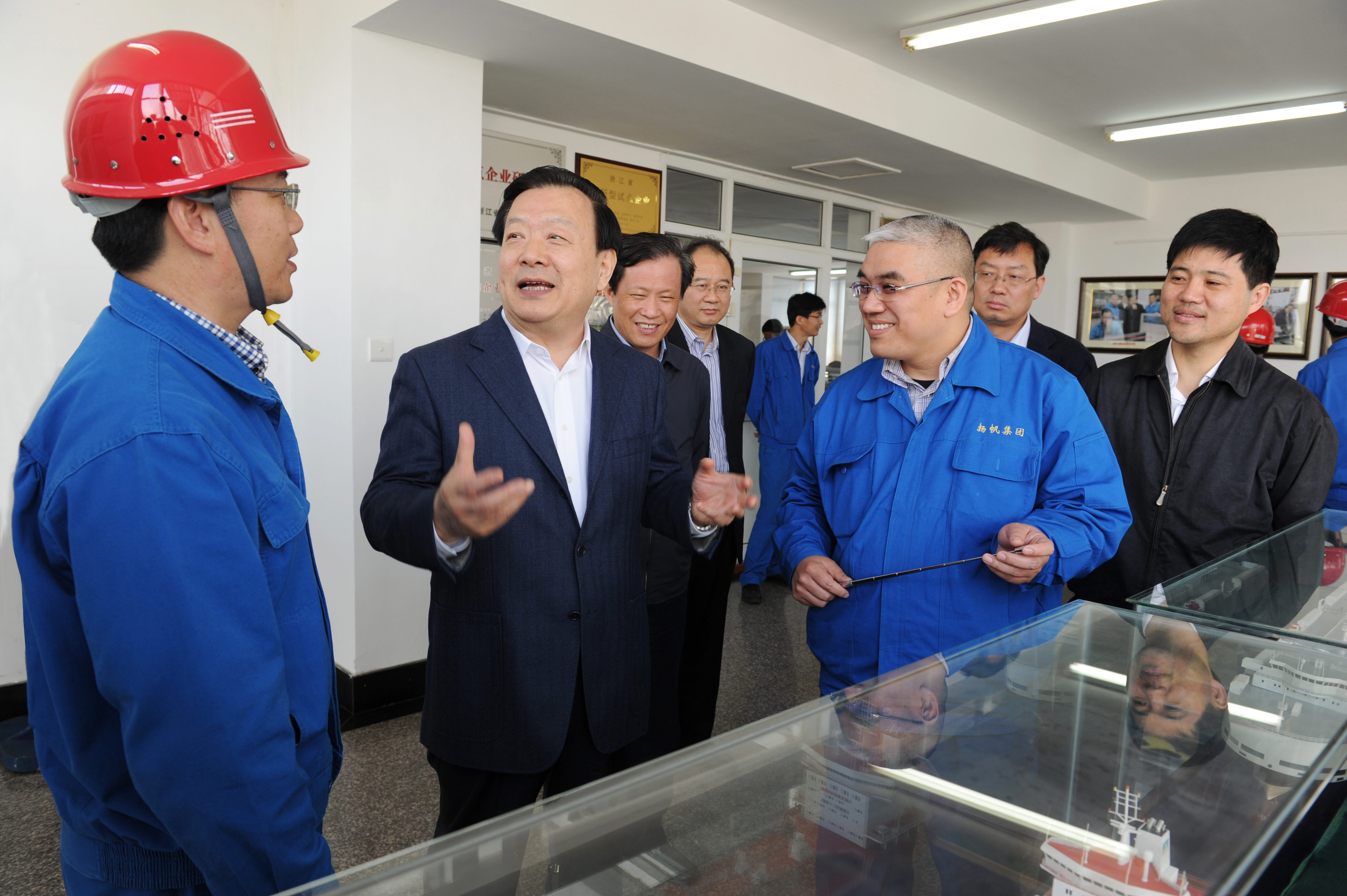 夏寶龍充分肯定了揚帆集團目前取得的成績。他強調(diào),船舶工業(yè)是我省經(jīng)濟發(fā)展的重要組成部分,希望揚帆加強規(guī)劃,重視企業(yè)設計院的建設發(fā)展,注重產(chǎn)學研相結合,發(fā)揮揚帆特色優(yōu)勢,努力開發(fā)新技術、新產(chǎn)品;重視人才的培養(yǎng)和引進,多招聘和培養(yǎng)高端的人才;強化市場意識,加大市場開拓力度;加強與國內(nèi)外研發(fā)機構、大學合作力度,整合資源不斷創(chuàng)新,做國際化的企業(yè)。夏寶龍書記最后希望揚帆不斷提高企業(yè)經(jīng)營管理水平,構建和諧平安造船,為促進我省船舶工業(yè)和國民經(jīng)濟發(fā)展作出新的更大貢獻。